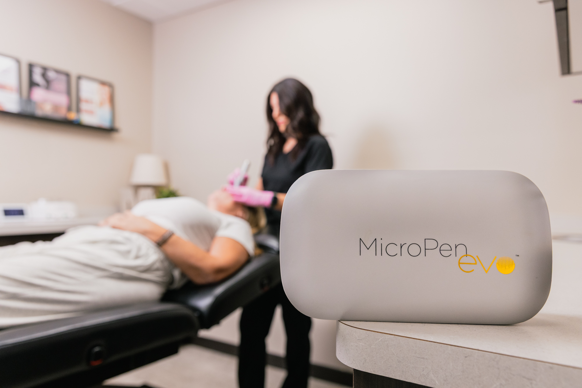 RF microneedling is microneedling plus radiofrequency energy. Tiny needles create micro-channels in the skin, which tells your body to make more collagen. When we add RF energy, gentle heat helps the skin heal and enhances your results.